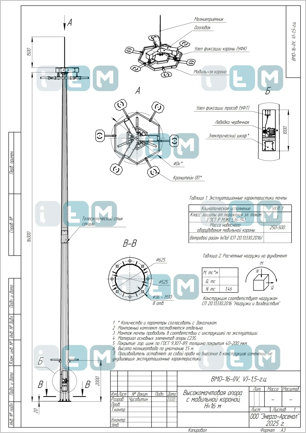 Особенности мачты ВМО-16-430/200 (МГФ-16-М)