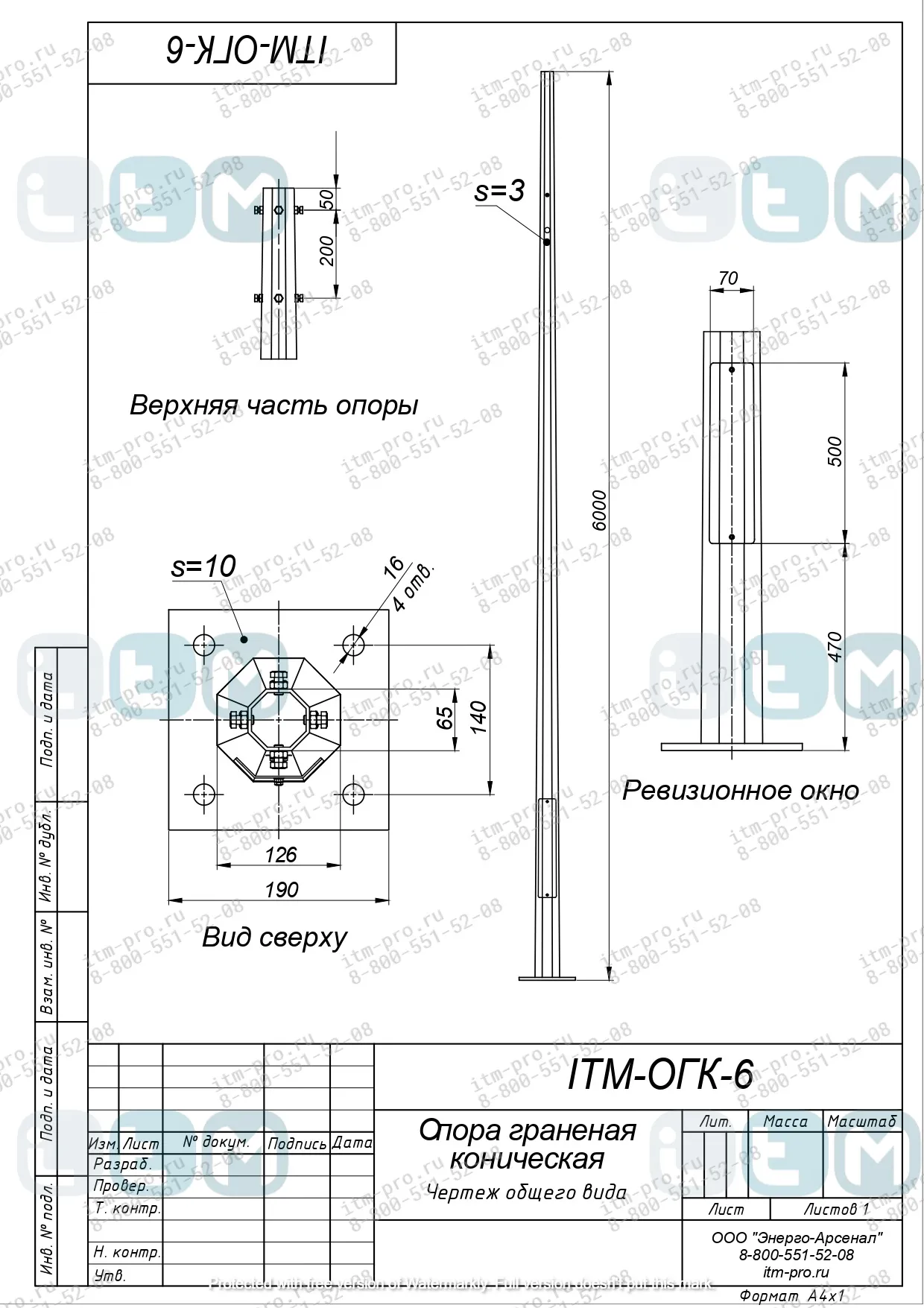 Опора ОГК 6 – это несиловая фланцевая граненая стальная опора освещения. Аббревиатура ОГК-6 дословно расшифровывается как «опора граненая коническая», где цифра 6 означает высоту опоры (6 метров).
