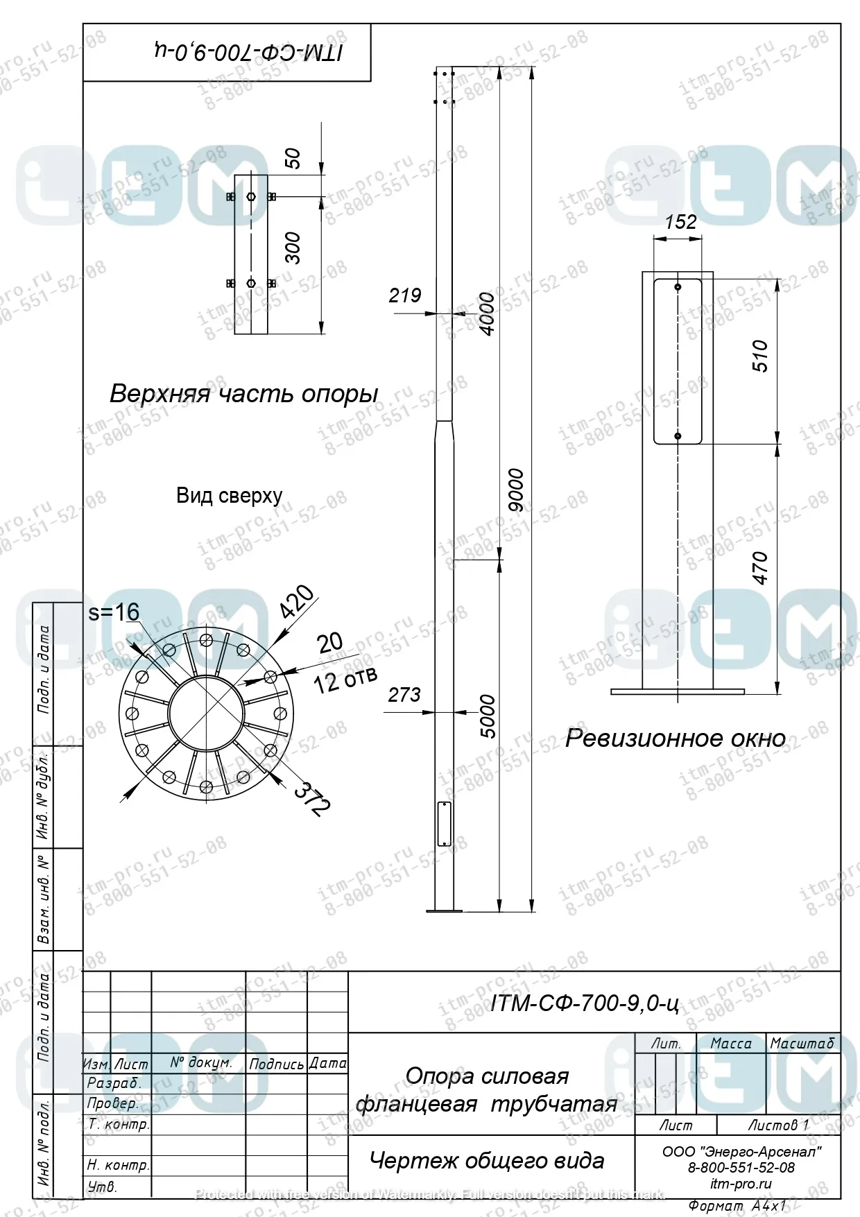 Опоры СФ-700-9,0 – это силовые фланцевые трубчатые опоры, которые способны выдерживать нагрузку до 700 кг, высота столба - 9 метров.