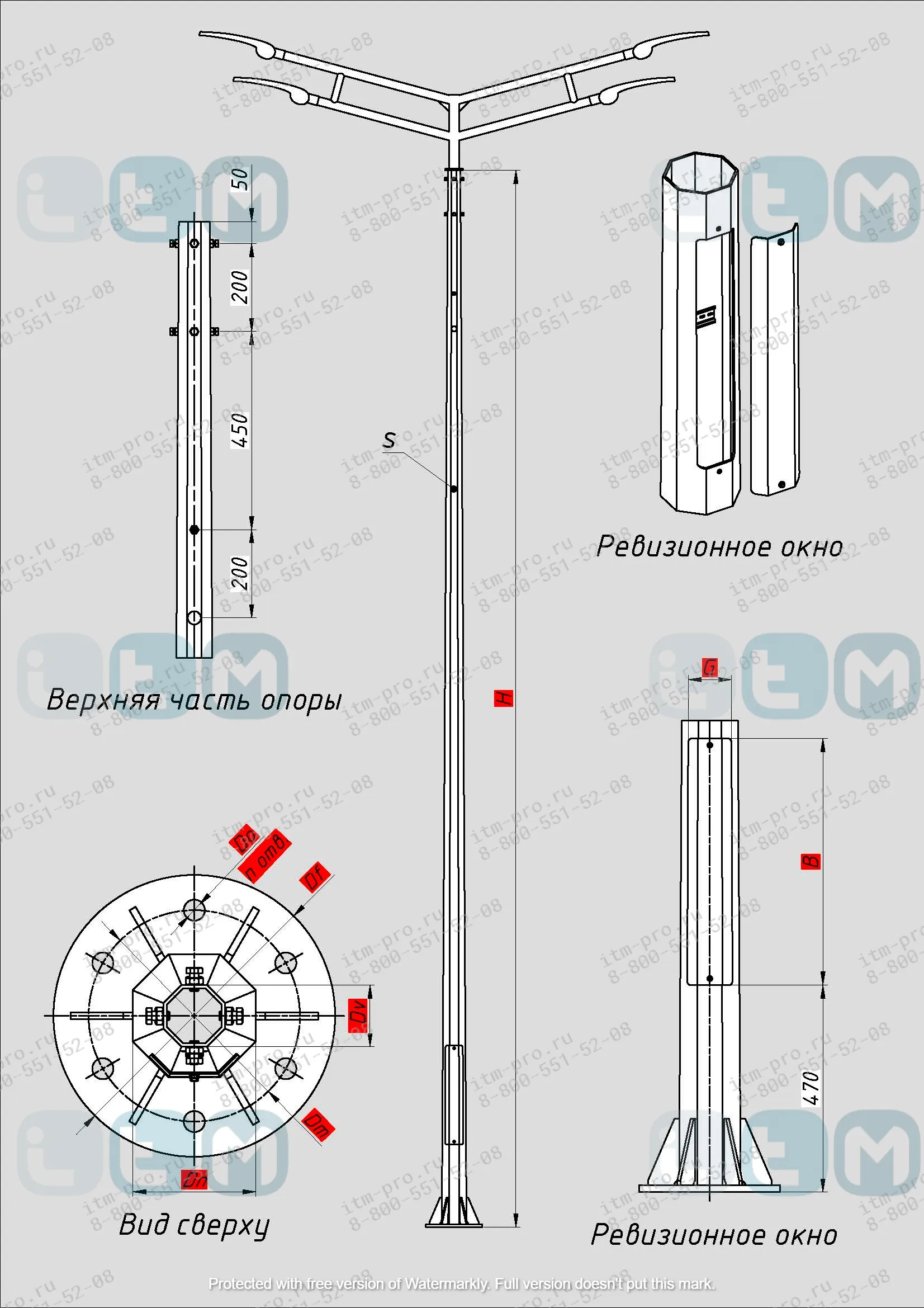 Опора СФГ-700-8.0 – это стальной граненый столб, для организации освещения, его необходимо укомплектовать: